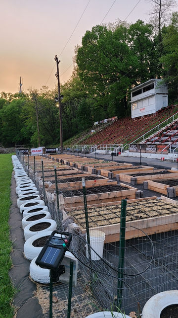We repurposed the bleachers and football field at the historic "Rock Pile" at the former Bishop McDevitt High School. We have harvested a yield of over 16,000 pounds of vegetables with planned increases of about 25% a year over the subsequent years as we improve the garden space and soil makeup. That is enough to supply over 200 families with 50 pounds each of fresh vegetables over the growing season!